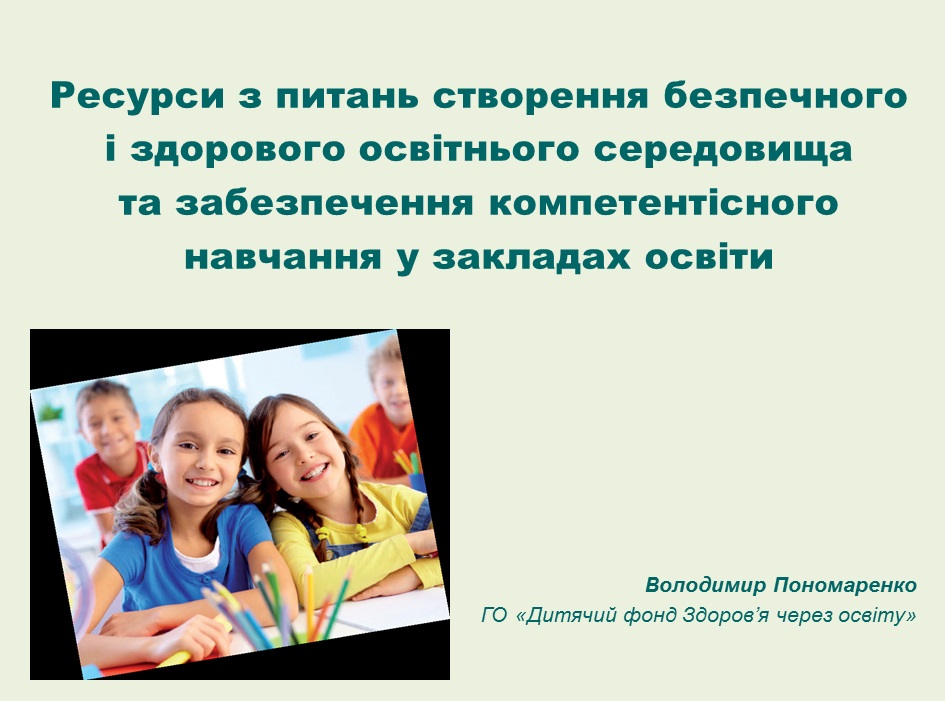 Міністерство освіти і науки України спільно з Представництвом в Україні Дитячого фонду ООН (ЮНІСЕФ) та громадською організацією «Дитячий фонд “Здоров’я через освіту”»